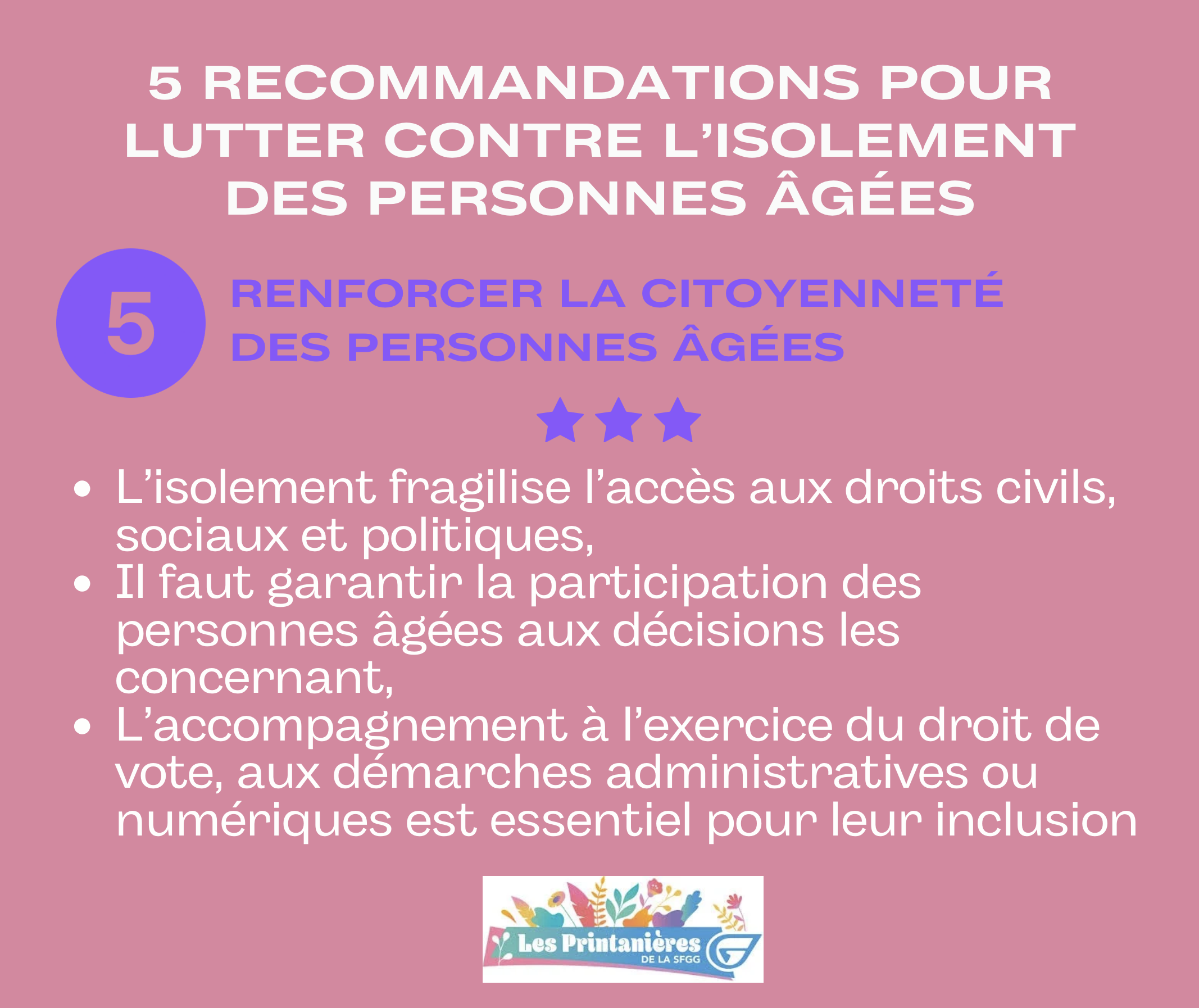 Voici 5 recommandations clés issues des Actes des Printanières 2025, centrées sur la lutte contre l’isolement des personnes âgées :