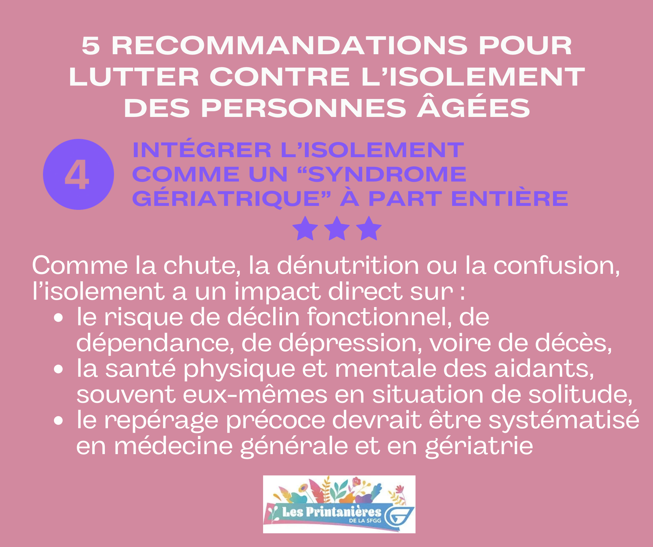 4. Intégrer l’isolement comme un “syndrome gériatrique” à part entière
