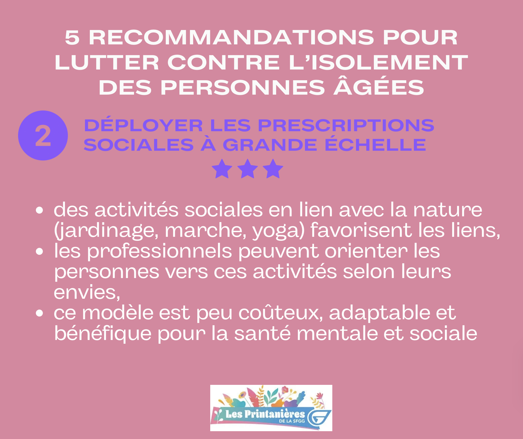 - Des activités sociales en lien avec la nature (jardinage, marche, yoga) favorisent les liens,