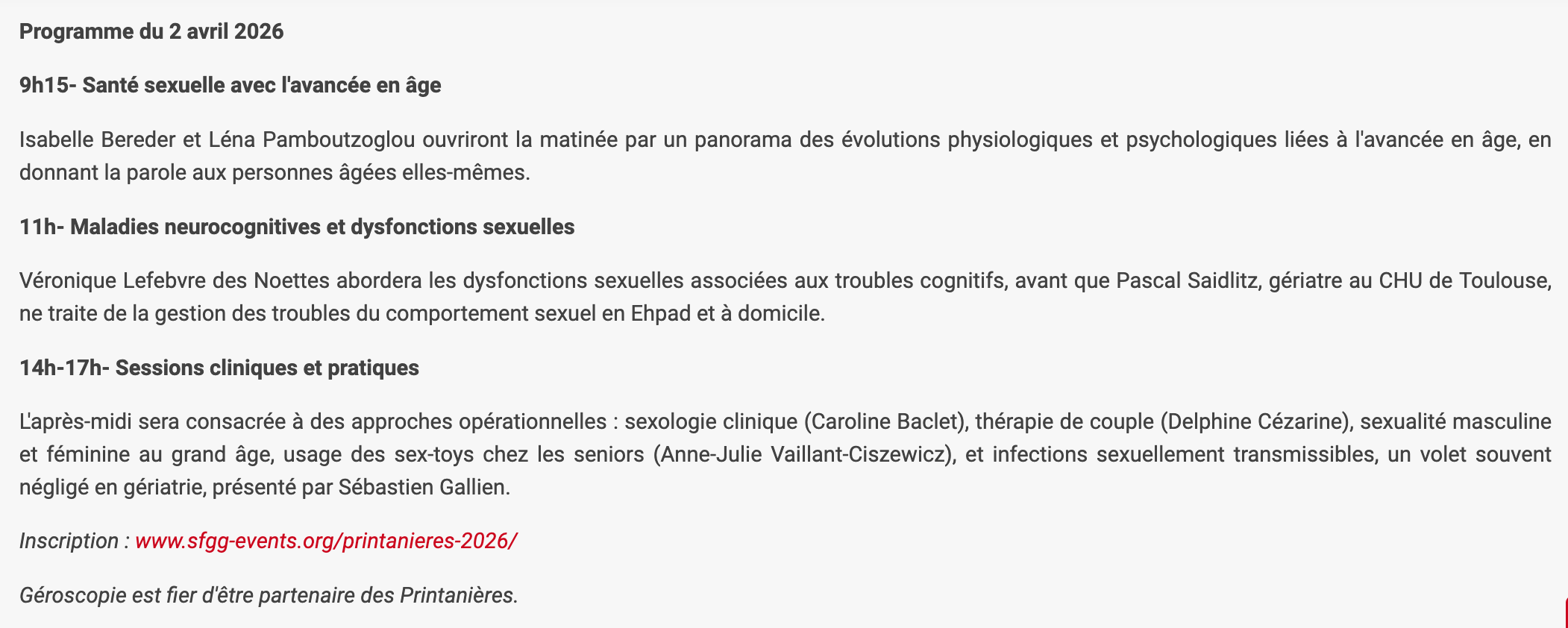 - S'inscrire aux Printanières en webinaire "Et la sexualité après 80 ans ?" - 2 avril