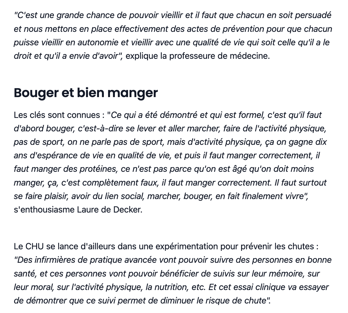 Le CHU de Nantes mise sur la prévention pour permettre aux séniors de rester en bonne santé le plus longtemps possible. On fait le point, en cette journée internationale des personnes âgées, avec Laure de Decker, cheffe du pôle hospitalo-universitaire de gériatrie de Nantes.